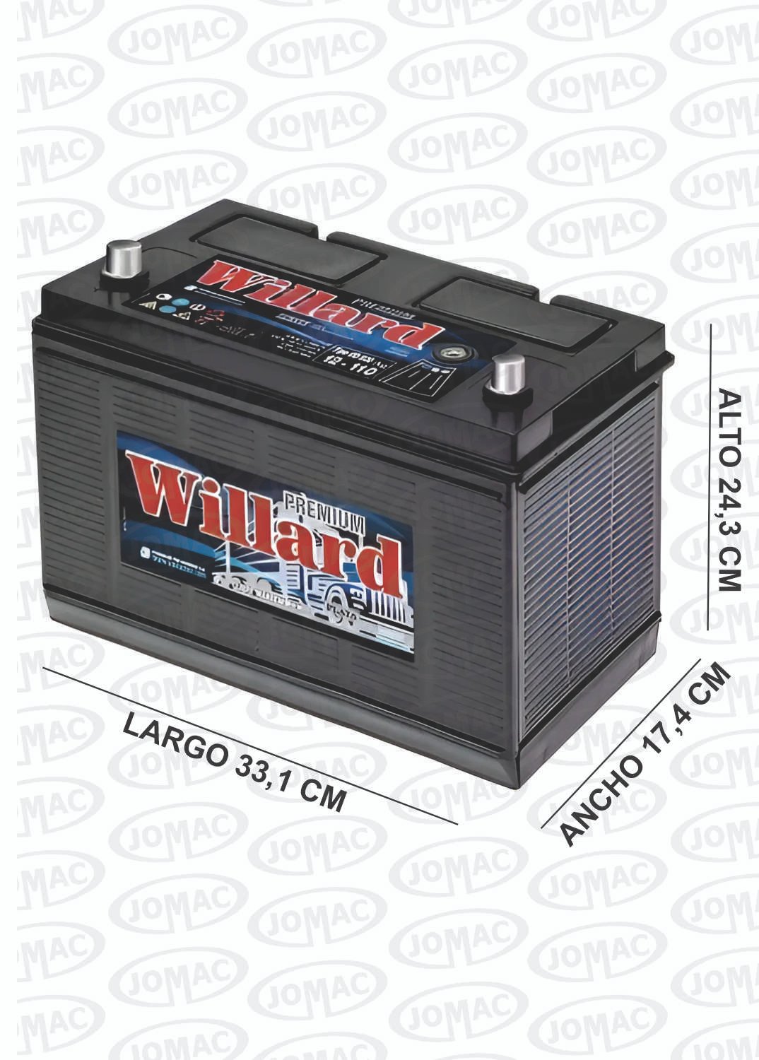 BATERIAS WILLARD 12V110 AMP 750 CCA 331X174X243 C/VISOR